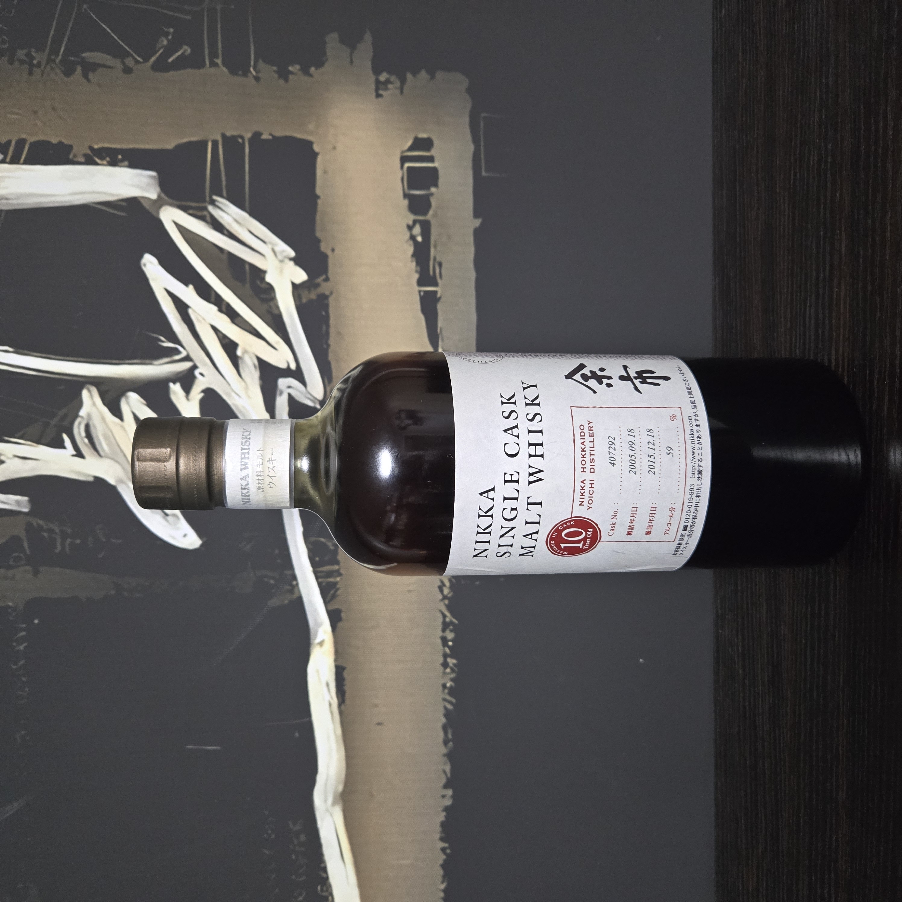 니카 요이치 증류소의 10년 숙성 싱글 캐스크 병입. 요이치는 1934년 설립된 일본 최초의 위스키 증류소 중 하나로, 석탄 직화 증류 방식을 고수하는 전통적 생산자. 59% ABV 싱글 캐스크는 정규 라인업이 아닌 증류소 한정 또는 특별 병입으로, 2009년 증류 Cask No. 411148 같은 개별 캐스크 번호로 출시. 일본 위스키 붐 이후 요이치 에이지 스테이트먼트(10년, 15년, 20년)는 대부분 단종되었고, 현재는 NAS(Non-Age Statement) 제품 중심. 10년 표기 제품은 과거 재고 또는 극소량 특별 병입만 존재.